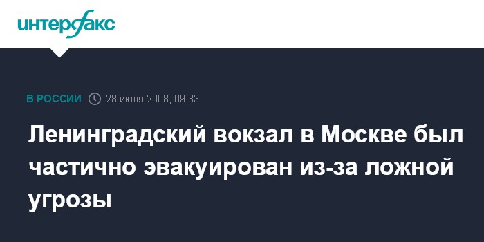 Москва. 28 июля. INTERFAX.RU - Из-за телефонного звонка об угрозе взрыва в субботу вечером на некоторое время была нарушена работа Ленинградского вокзала в Москве, сообщил "Интерфаксу" источник в правоохранительных органах столицы.