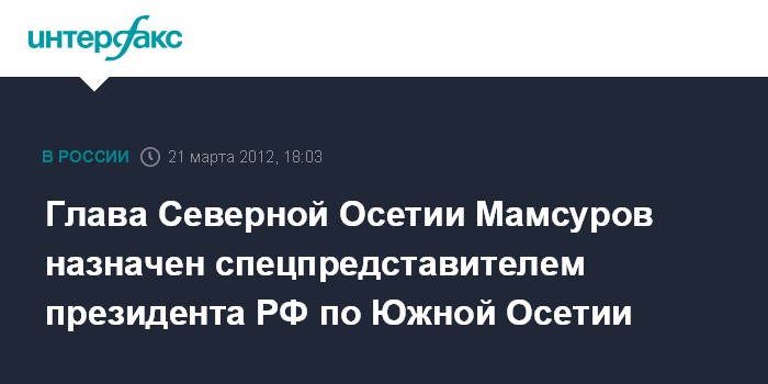 Москва. 21 марта. INTERFAX.RU - Дмитрий Медведев назначил главу республики Северная Осетия - Алания Таймараза Мамсурова специальным представителем президента РФ по Южной Осетии.