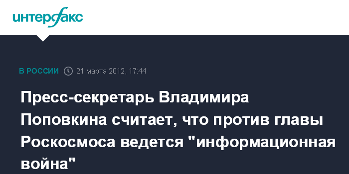 Пресс-секретарь Владимира Поповкина считает, что против главы Роскосмоса ведется "информационная война"
