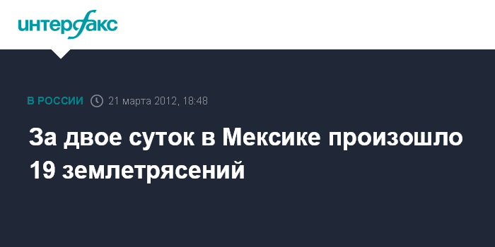 Вашингтон/Мехико. 21 марта. INTERFAX.RU - В общей сложности 19 землетрясений, в том числе сильных, произошло в Мексике за минувший вторник и среду, сообщила Геологическая служба США. Только в среду их было десять.
