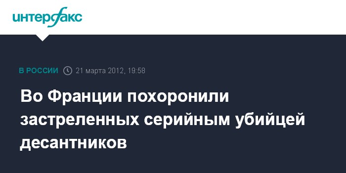 Париж. 21 марта. INTERFAX.RU - Президент Франции Николя Саркози возглавил в среду церемонию похорон троих военных, застреленных серийным убийцей из Тулузы, сообщают местные СМИ.