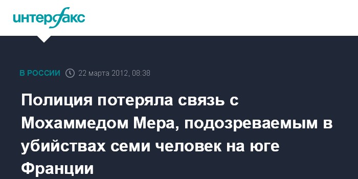 Париж. 22 марта. INTERFAX.RU - Связь переговорщиков с главным подозреваемым в серии убийств в Тулузе и Монтобане, произошедших в начале марта, прервана, сообщил телеканал "BFMtv".