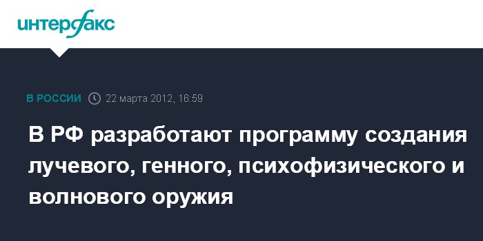 В РФ разработают программу создания лучевого, генного, психофизического и волнового оружия