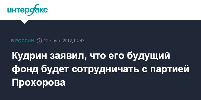 Москва. 23 марта. ИНТЕРФАКС - Экс-министр финансов Алексей Кудрин заявил, что фонд, который он намеревается создать, будет сотрудничать с партией Прохорова.