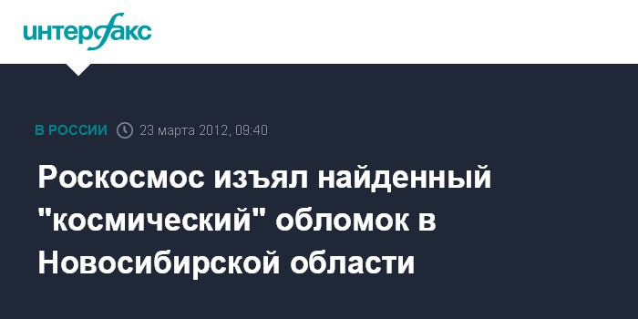 Роскосмос изъял найденный "космический" обломок в Новосибирской области