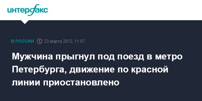 Санкт-Петербург. 23 марта. INTERFAX.RU - Мужчина прыгнул под поезд на станции петербургского метрополитена "Балтийская" в пятницу днем, сообщил "Интерфаксу" источник в правоохранительных органах.