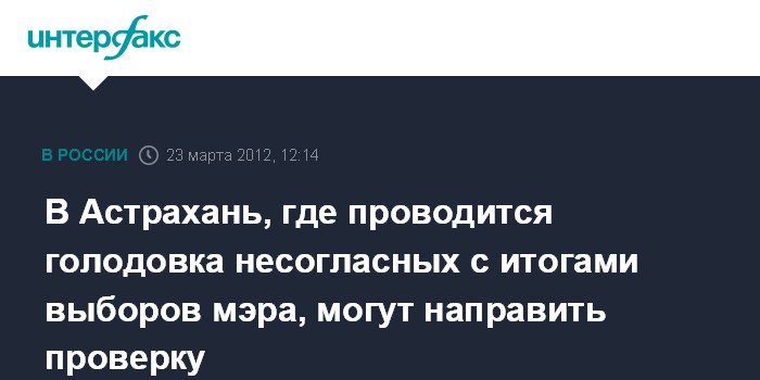 В Астрахань, где проводится голодовка несогласных с итогами выборов мэра, могут направить проверку