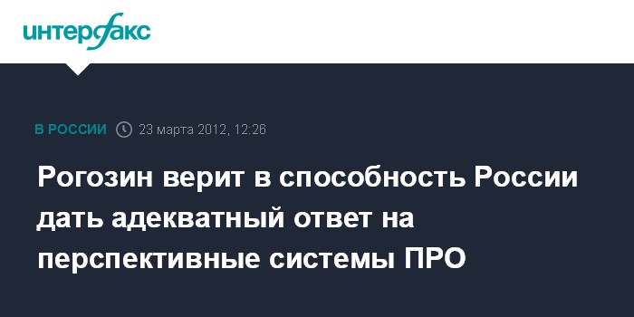 Рогозин верит в способность России дать адекватный ответ на перспективные системы ПРО