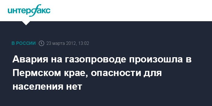 Авария на газопроводе произошла в Пермском крае, опасности для населения нет
