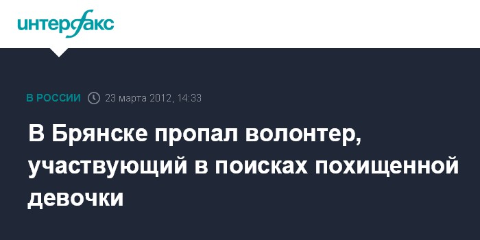 Брянск. 23 марта. INTERFAX.RU - В Брянске пропал 23-летний волонтер поисково-спасательного отряда "Полярная звезда" Сергей Фетисов, участвовавший в поисках пропавшей 9-месячной девочки, сообщил "Интерфаксу" один из волонтеров в пятницу.