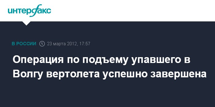 Операция по подъему упавшего в Волгу вертолета успешно завершена