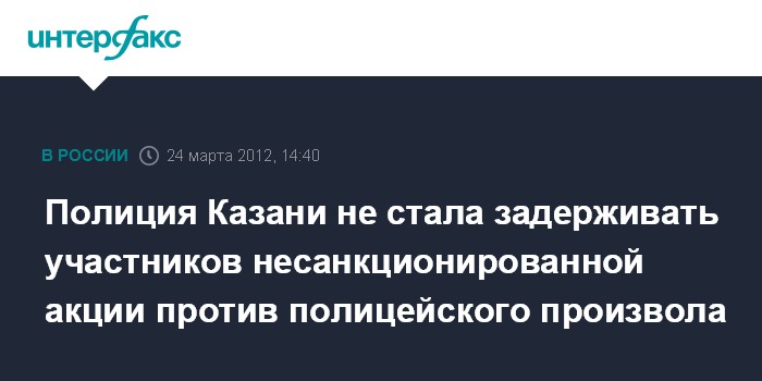 Казань. 24 марта. INTERFAX.RU - Несанкционированный митинг против полицейского произвола с участием лидера общественного движения "За права человека" Льва Пономарева и депутата Госдумы, "эсера" Ильи Пономарева проходит в Казани.