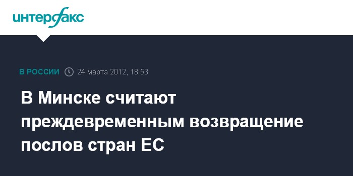 Минск. 24 марта. INTERFAX.RU - Возвращение в Минск послов стран Евросоюза в настоящее время является преждевременным, но никто не заявлял о том, что путь в Белоруссию им закрыт, заявил агентству "Интерфакс-Запад" в субботу начальник управления информации - пресс-секретарь МИД Белоруссии Андрей Савиных.