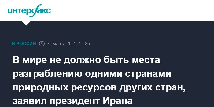 В мире не должно быть места разграблению одними странами природных ресурсов других стран, заявил президент Ирана