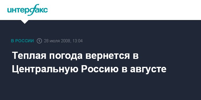 Теплая погода вернется в Центральную Россию в августе