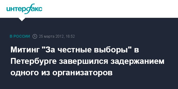 Санкт-Петербург. 25 марта. INTERFAX.RU - Очередной митинг "За честные выборы" состоялся в северной столице, передал корреспондент "Интерфакса" с места событий. В целом, по его оценке, мероприятие получилось малочисленным. Несмотря на широкую агитацию и призывы прийти в воскресенье на митинг на Конюшенную площадь, в итоге туда пришло немного сторонников, в основном это были активисты националистических организаций города.