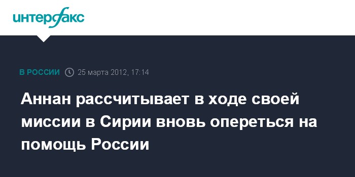 Москва. 25 марта. INTERFAX.RU - Спецпосланник ООН и лиги Арабских государств (ЛАГ) в Сирии Кофи Аннан заявил, что рассчитывает на помощь со стороны России в урегулировании конфликта в Сирии. "Мы рассчитываем на то, что, как всегда, сможем вновь положиться на помощь и на добрые советы со стороны России", - сказал К.Аннан в ходе встречи в воскресенье в Москве с президентом РФ Дмитрием Медведевым.