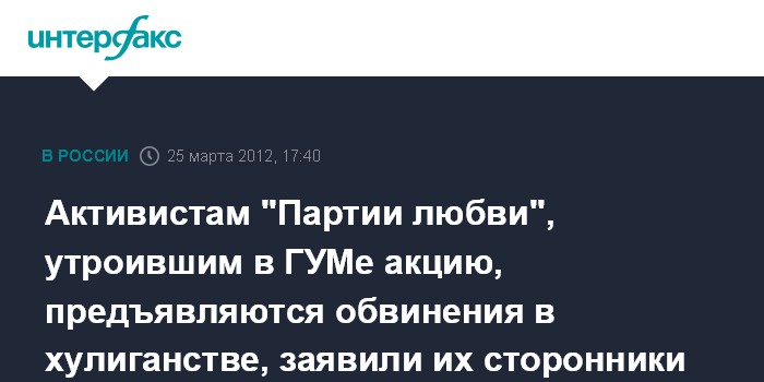 Активистам "Партии любви", утроившим в ГУМе акцию, предъявляются обвинения в хулиганстве, заявили их сторонники