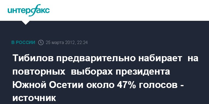 Л.Тибилов набирает около 47% голосов", - добавил источник.