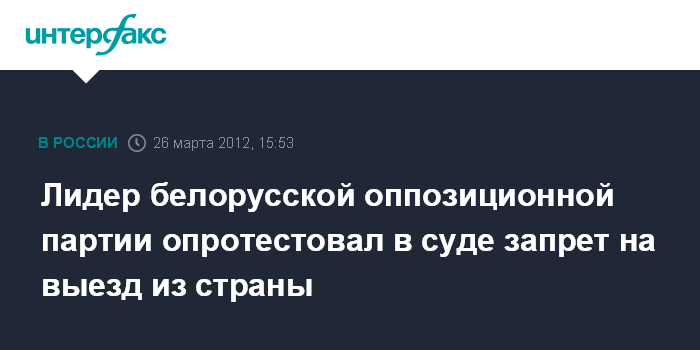 Лидер белорусской оппозиционной партии опротестовал в суде запрет на выезд из страны