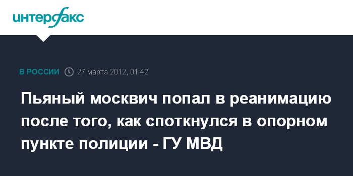 Пьяный москвич попал в реанимацию после того, как споткнулся в опорном пункте полиции - ГУ МВД