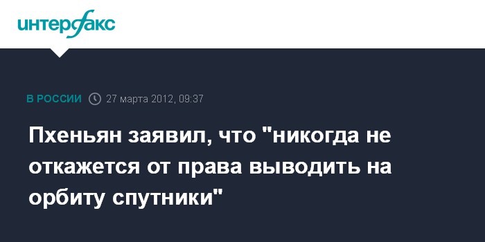 Сеул. 27 марта. INTERFAX.RU - Северная Корея не собирается отказываться от законного права выводить на орбиту спутники, сообщает во вторник официальное северокорейское агентство ЦТАК.