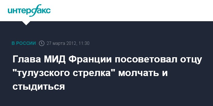 Глава МИД Франции посоветовал отцу "тулузского стрелка" молчать и стыдиться