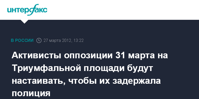 Активисты оппозиции 31 марта на Триумфальной площади будут настаивать, чтобы их задержала полиция