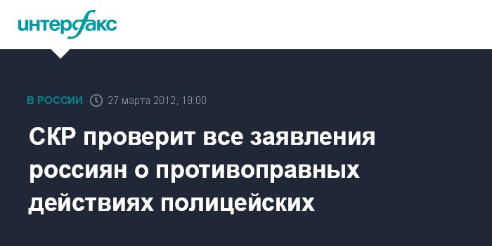 Москва. 27 марта. INTERFAX.RU - Следственные органы начали в регионах РФ масштабные проверки по фактам заявлений граждан о незаконных действиях полицейских, сообщил "Интерфаксу" официальный представитель СКР Владимир Маркин.