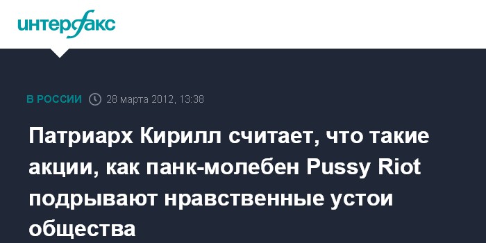 Патриарх Кирилл считает, что такие акции, как панк-молебен Pussy Riot подрывают нравственные устои общества