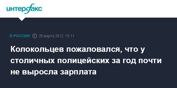 Москва. 28 марта. INTERFAX.RU - Реальная зарплата столичных полицейских выросла в 2012 году в 1,23 раза, тогда как в среднем по стране она увеличилась в два раза, сообщил начальник ГУ МВД России по Москве Владимир Колокольцев в ходе своего отчета перед Мосгордумой в среду.