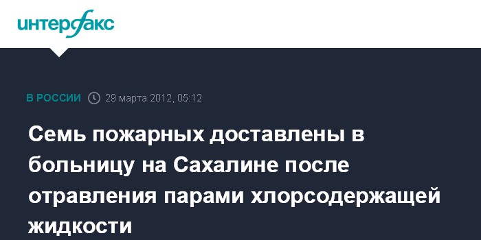 В свою очередь, заведующий терапевтическим отделением Смирныховской центральной районной больницы Виталий Роговцев сообщил агентству, что пострадавшие семь человек из пожарной части были доставлены в больницу машиной скорой помощи около 23:00 в минувшую среду.