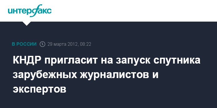 Токио. 29 марта. INTERFAX.RU - Северная Корея предложит иностранным журналистам и специалистам наблюдать за подготовкой к запланированному на середину апреля запуску спутника Земли, передает японская телекомпания NHK, ссылаясь на сообщения ЦТАК КНДР.