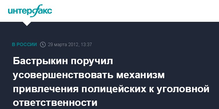 Москва. 29 марта. INTERFAX.RU - Глава Следственного комитета РФ Александр Бастрыкин потребовал от центрального аппарата ведомства проработать вопрос о совершенствовании механизма привлечения полицейских к уголовной ответственности, сообщил официальный представитель СК РФ Владимир Маркин.
