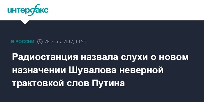Радиостанция назвала слухи о новом назначении Шувалова неверной трактовкой слов Путина