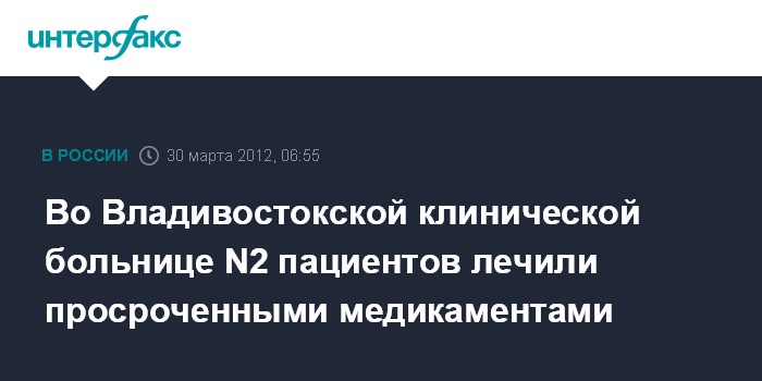Владивосток. 30 марта. ИНТЕРФАКС-ДАЛЬНИЙ ВОСТОК - В одной из крупнейших больниц Приморья, Краевом государственном бюджетном учреждении "Владивостокская клиническая больница N2", прокуратура выявила факты лечения больных просроченными медикаментами.