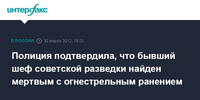 Полиция подтвердила, что бывший шеф советской разведки найден мертвым с огнестрельным ранением