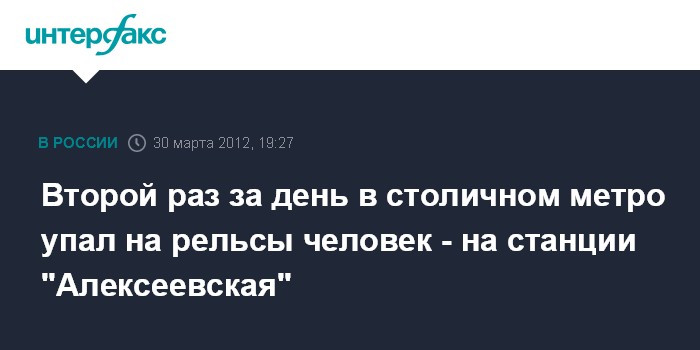 Москва. 30 марта. INTERFAX.RU - В пятницу вечером на станции "Алексеевская" Калужско-Рижской линии московского метрополитена на рельсы упал человек, сообщили "Интерфаксу" в пресс-службе метро.