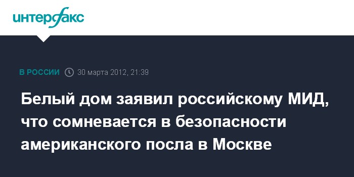 Белый дом заявил российскому МИД, что сомневается в безопасности американского посла в Москве