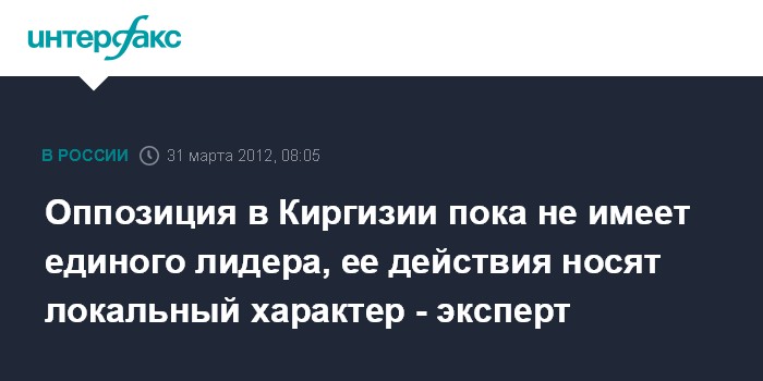 "Оппозиция пока вынуждена проводить митинги в регионах, поскольку не может выйти на общенациональный уровень", - сказал он "Интерфаксу", комментируя намеченный на 31 марта на юге Киргизии митинг оппозиции.