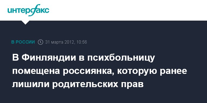 В Финляндии в психбольницу помещена россиянка, которую ранее лишили родительских прав