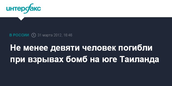 Бангкок. 31 марта. INTERFAX.RU - По крайней мере, девять человек погибли, еще около 70 были ранены в результате трех взрывов бомб в центре города Ялла на юге Таиланда, сообщила местная полиция.