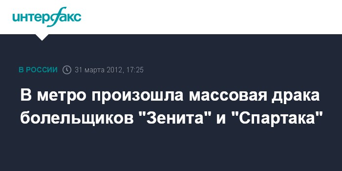 Москва. 31 марта. СПОРТ-ЭКСПРЕСС/INTERFAX.RU - На станции метро "Университет" в субботу вечером завязалась массовая драка между болельщиками футбольных клубов "Зенит" (Санкт-Петербург) и "Спартак" (Москва).