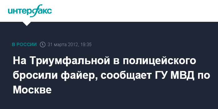 На Триумфальной в полицейского бросили файер, сообщает ГУ МВД по Москве