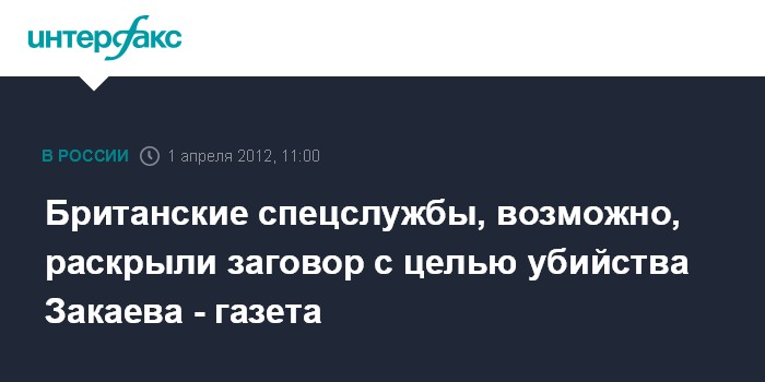 Лондон. 1 апреля. INTERFAX.RU - Британская спецслужба МИ5 раскрыла заговор с целью убийства живущего в Великобритании одного из лидеров чеченских сепаратистов Ахмеда Закаева, утверждает в воскресенье британское издание "Санди телеграф".