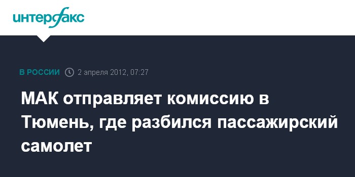 Москва. 2 апреля. INTERFAX.RU - Межгосударственный авиационный комитет (МАК) формирует комиссию для расследования катастрофы пассажироского самолета в Тюмени.