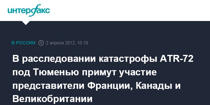 В расследовании катастрофы ATR-72 под Тюменью примут участие представители Франции, Канады и Великобритании