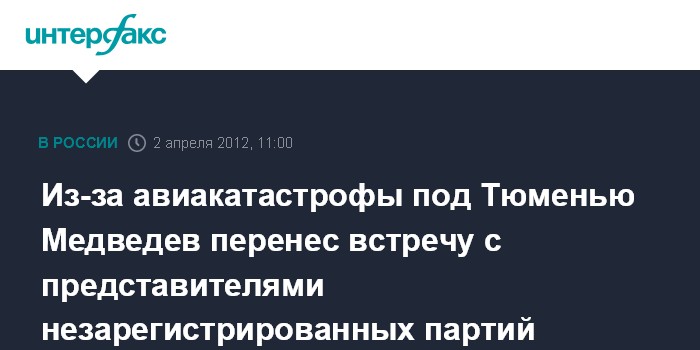 Из-за авиакатастрофы под Тюменью Медведев перенес встречу с представителями незарегистрированных партий