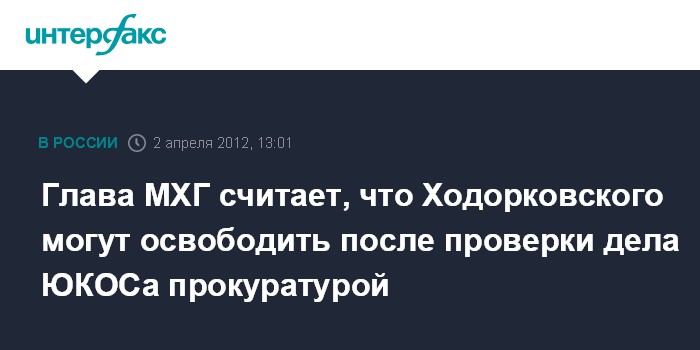 Глава МХГ считает, что Ходорковского могут освободить после проверки дела ЮКОСа прокуратурой