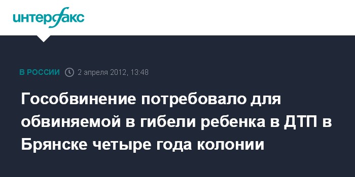 Гособвинение потребовало для обвиняемой в гибели ребенка в ДТП в Брянске четыре года колонии